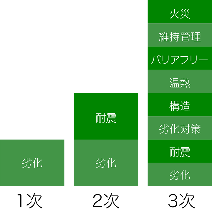 既存住宅の見える劣化まで診断する「1次インスペクション」。さらに耐震診断を加えた「2次インスペクション」。1次、2次までは一般的には不動産店や工務店でも実施されます。